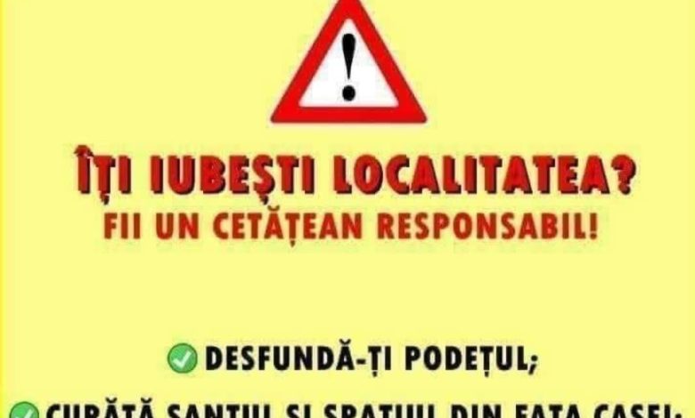 Autoritățile locale din comuna Aninoasa fac un apel către toți cetățenii să se implice activ în menținerea curățeniei. Fiecare proprietar este rugat să curețe șanțurile și podețele din fața porții și a terenurilor care au ieșire la drumul județean, drumurile comunale sau drumurile sătești.