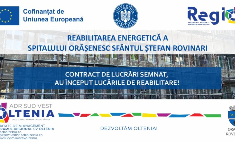 Orașul Rovinari a semnat contractul de lucrări pentru renovarea energetică a Spitalului Orășenesc ”Sf. Ștefan” în data de 30.07.2025. Constructorul este Asocierea RDD CONS SRL – ELAFANCONS SRL- ULVILANCONS IMOB SRL care a fost selectată în urma desfășurării procedurilor de achiziție publică de către Primăria Orașului Rovinari. Contractul, semnat în data de 30.07.2025, are valoarea de 14.949.702,41 lei, fără TVA.