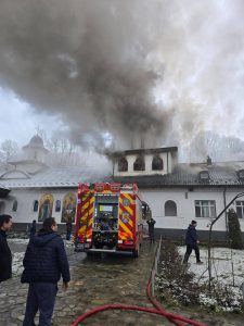 Chiar în ziua în care era săvârșit parastasul de un an pentru trecerea la Domnul a maicii stareță Marina, un incendiu puternic a izbucnit la corpul de chilii al mănăstirii. Fumul gros care s-a ridicat deasupra acestui loc cu peste 500 de ani de rugăciune a adus neliniște și durere în sufletele tuturor.
