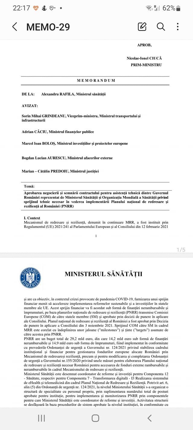 Ce a făcut Rafila? În luna mai, pe șest, ca hoțul, cel care se visează președintele României, fost șef la OMS, a înaintat un Memorandum către Guvernul României prin care a cerut ca OMS să facă consultanță, inclusiv pentru partea de digitalizare din atât de hulitul de către PSD program pe Sănătate numit PNNR.