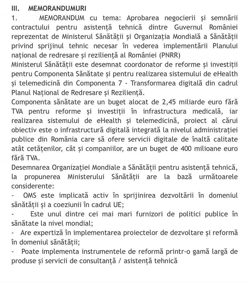 Memorandumul cu OMS a fost semnat în mare secret de Guvernul României în luna iunie!