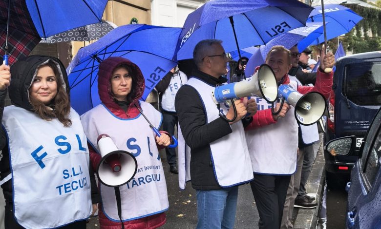 După ce ieri au pichetat sediul miniserului Finanțelor, astăzi profesorii și-au strigat nemulțumirile în fața ministerului Educației. Cadrele didactice sunt nemulțumite de măsurile fiscal-bugetare adoptate de Guvern, dar şi de amânarea plăţii tranşelor aferente sumelor prevăzute prin hotărâri judecătoreşti. La protest au fost și dascăli de la Gorj care au precizat că este cod roșu în învățământ.