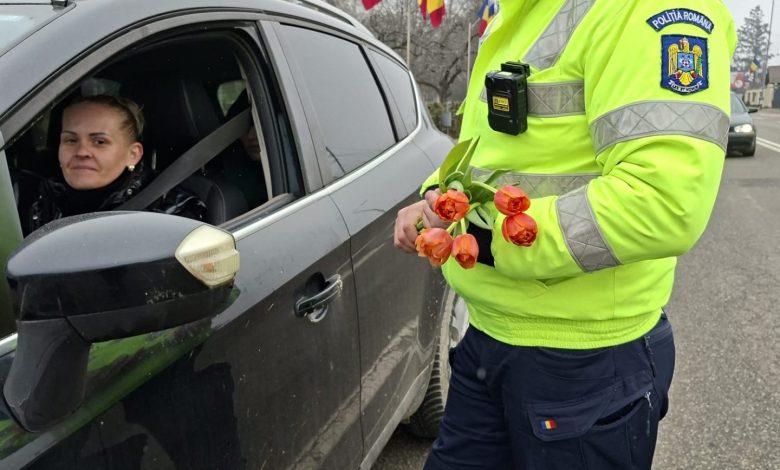 Toate doamnele și domnișoarele care au fost trase pe dreapta astăzi au fost amendate cu flori. Polițiștii gorjeni au oferit șoferițelor lalele cu ocazia zilei de 1 martie.