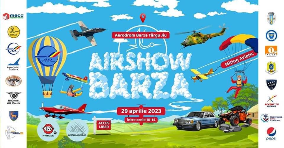 Sâmbătă, 29 aprilie, începând cu ora 10:00, pe Aerodromul de la Barza, are loc un miting aviatic special: Șoimii României – “Hawks of Romania” – formația de înaltă acrobație cu avioanele Extra, zboruri în formație cu avioanele școală Savanah, balonul cu aer cald și parașutiștii de la Aeroclubul României, elicopterele PUMA, avionul militar Șoim IAR 99, avionul Antonov An-30, celebra albinuță Apollo-Fox, avioanele ușoare de la Aerodrom Drobeta, Transylvania Wings, zboruri demonstrative cu aeromodele. La sol vor fi prezente automobile retro de la RetroMobil Gorj și mașinile buggy and rally de la Acs Raideri Târgu Jiu.