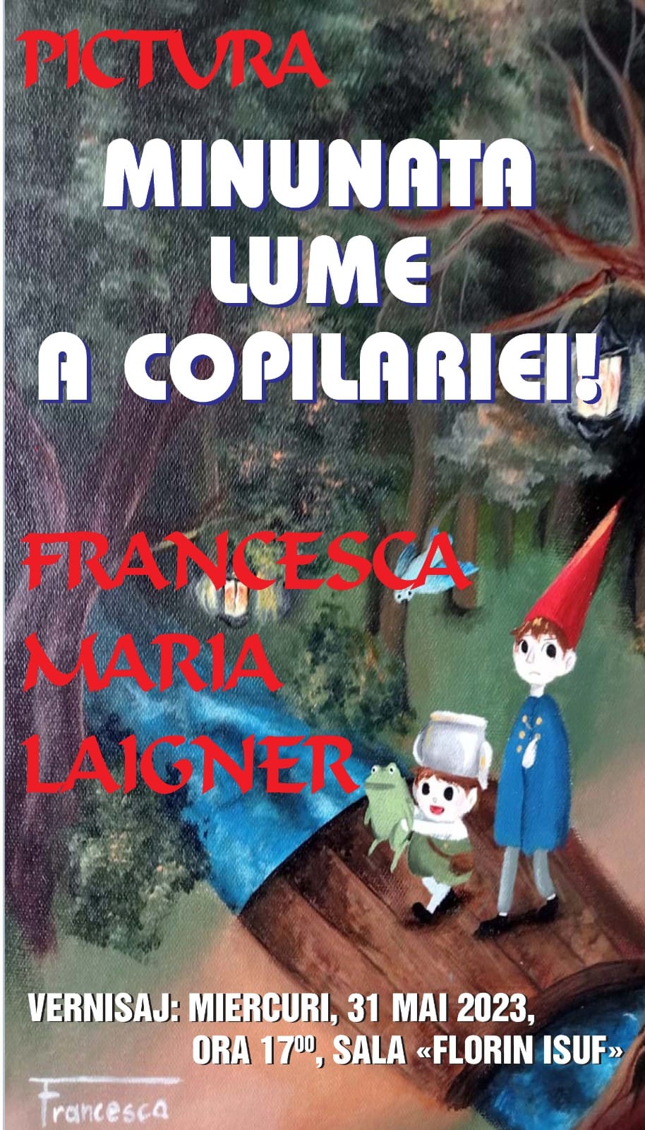 Centrul Județean pentru Conservarea și Promovarea Culturii Tradiționale Gorj invită publicul miercuri, 31 mai, începând cu ora 17:00, la vernisarea expoziției de pictură “Minunata lume a copilăriei!”, semnată de Laigner Francesca-Maria.