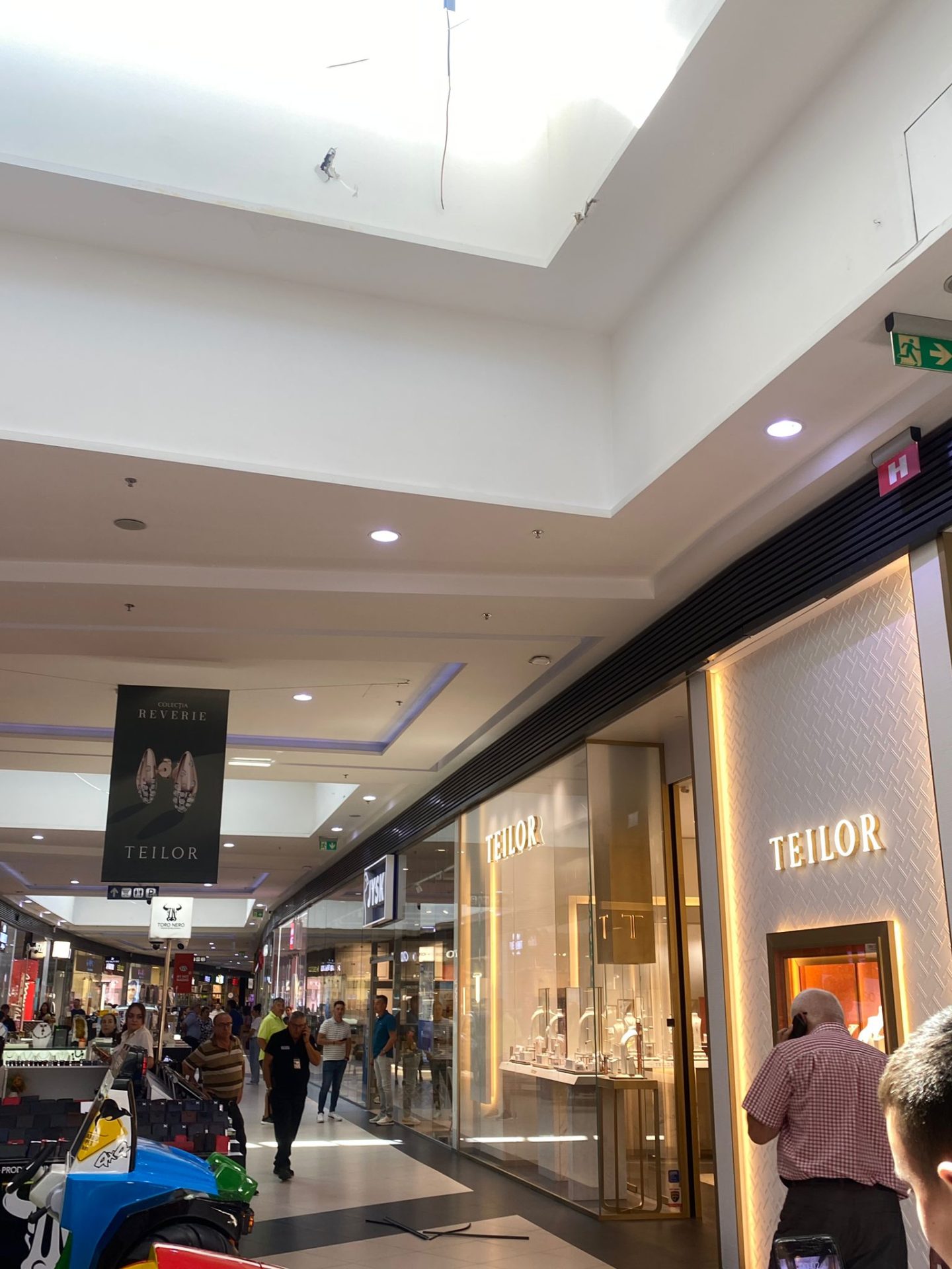 O după-amiază obișnuită de cumpărături se putea transforma într-o adevărată catastrofă pentru vizitatorii mall-ului din Târgu Jiu, după ce o fereastră de tavan s-a desprins și s-a prăbușit în plin culoar, chiar în fața magazinului de bijuterii Teilor.