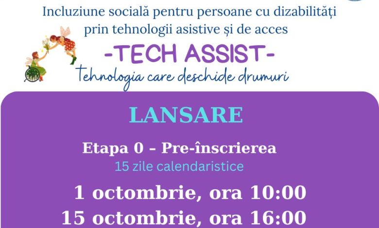 Începând cu 1 octombrie, persoanele cu dizabilități se pot pre-înscrie în cadrul proiectului „TECH ASSIST – Incluziune socială prin tehnologii asistive și de acces”. Etapa 0 durează 15 zile și presupune completarea unui formular online, disponibil pe site-ul ANPDPD.