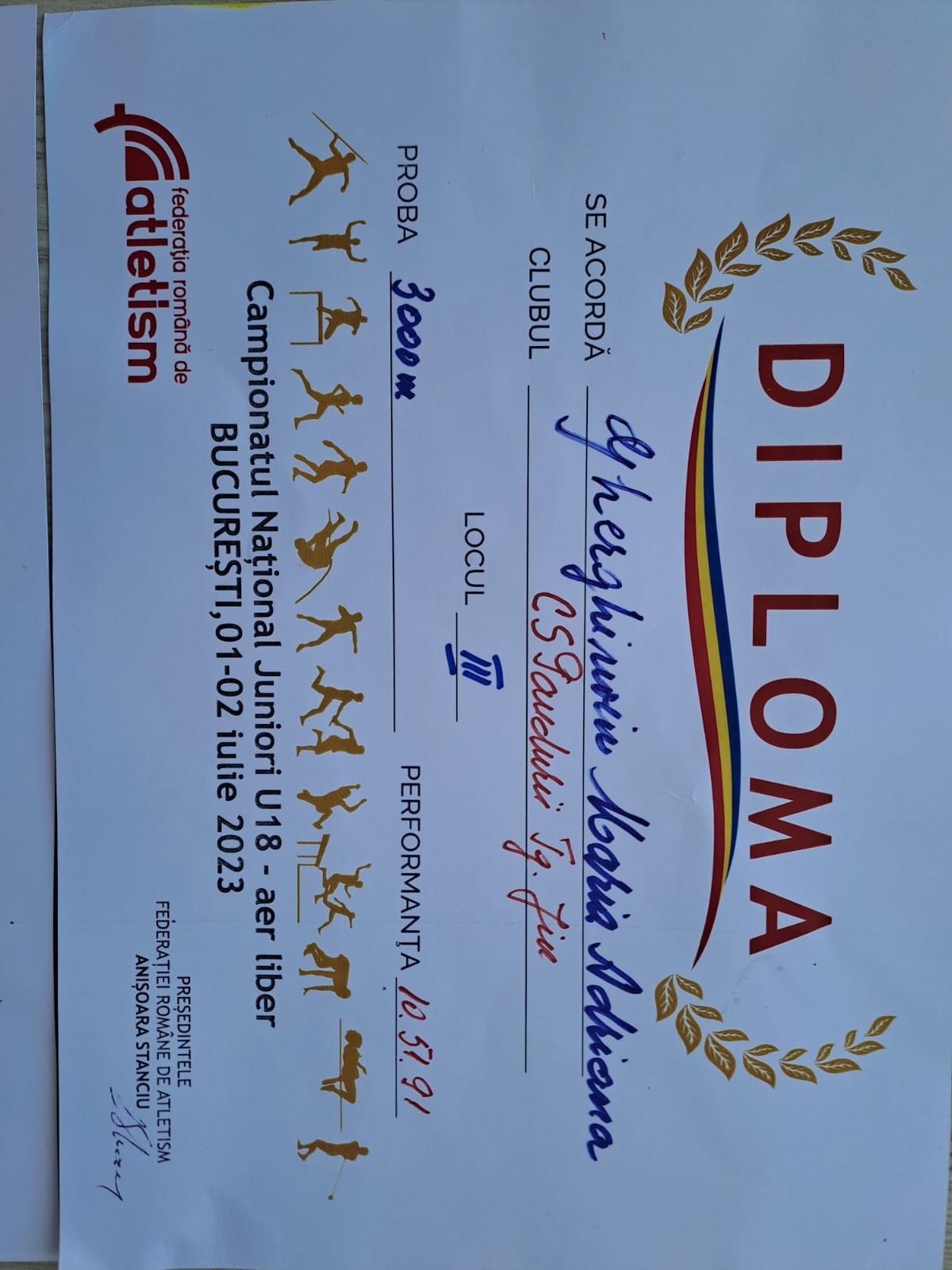 Atleta Maria Gherghinoiu vine acasă de la București cu noi rezultate. Târgujianca a obținut bronzul în cadrul Campionatului Național U18, la cele două probe, și anume proba de alergare 2000 m obstacole și proba de alergare 3000 m plat. Atleta declară că și-a depășit propriile recorduri și, în continuare, se antrenează și depune eforturi, având în vedere o accidentarea pe care a suferit-o cu câteva luni în urmă.