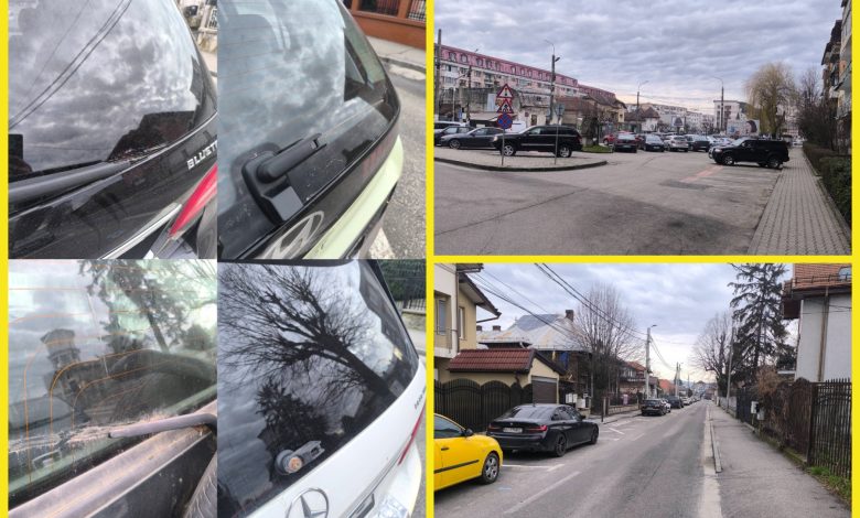 Concret, ștergătoarele de pe lunetă ar fi fost rupte la toate mașinile aflate în parcare.