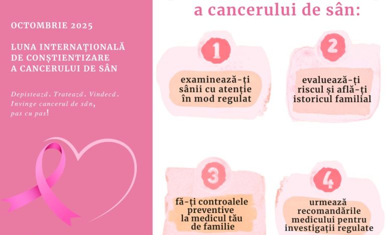Luna Octombrie este luna internațională de conștientizare a cancerului la sân, transmite INSP.