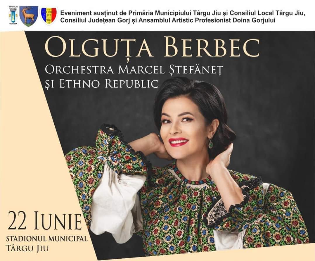 Un concert extraordinar susținut de Olguța Berbec, Orchestra Marcel Ștefăneț și Etno Republic, Nicolae Furdui Iancu, Vlăduța Lupău, Ionuț Dolănescu, Remus Novac, Cornelia Ștefăneț, Marcela Fota, Emilia Dragotoiu Nanu, Constantin Moacă, Andra Matei, Mihai Priescu, Cosmin Bîrlan, Borko Radivojevic și Corala Contrast va avea loc la Târgu Jiu.