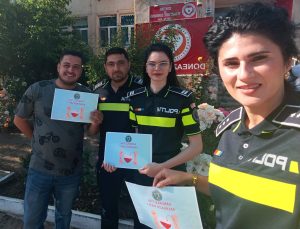 „ Astăzi, polițiștii gorjeni au donat sânge – Hai și tu! Te rugăm și pe tine să te alături acestei inițiative umanitare! Mergi la cel mai apropiat centru de transfuzii și donează sânge! Spune că donezi pentru: Diaconescu Georgiana Izabela