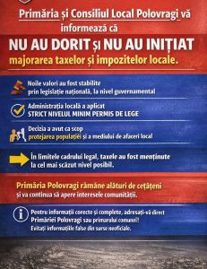 Primăria Polovragi subliniază că rămâne alături de cetățeni și că va continua să apere interesele comunității în toate deciziile administrative. Totodată, autoritățile locale îi îndeamnă pe cetățeni să se informeze din surse oficiale și să evite informațiile eronate apărute în spațiul public.