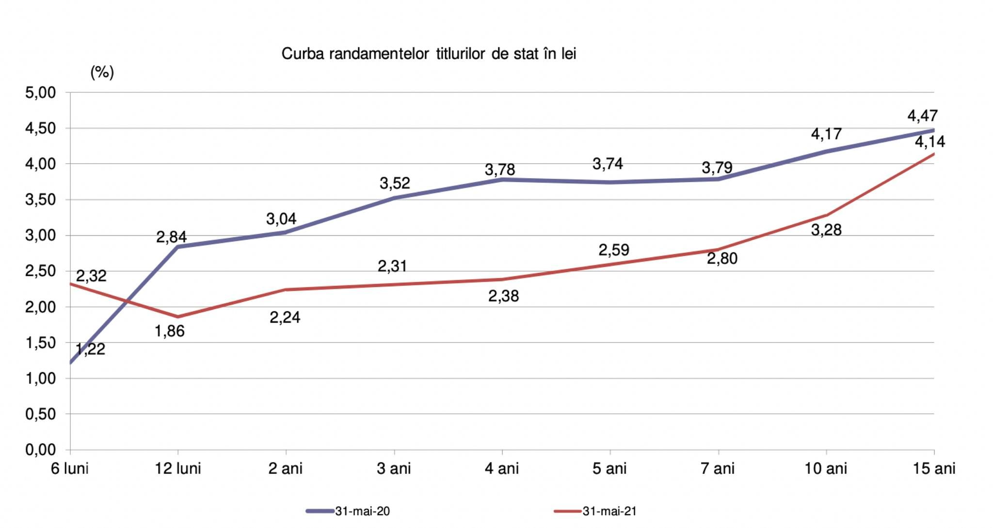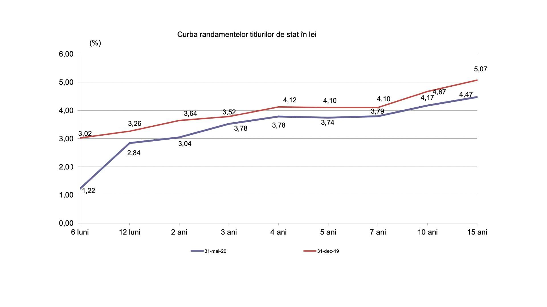 În 2020 România se împrumuta la dobânzi mai mici decât în 2019. La 6 luni 1.22% în 2020 < 3.02% în 2019. Iar la 15 ani, 4.47% în 2020 < 5.07% în 2019.
