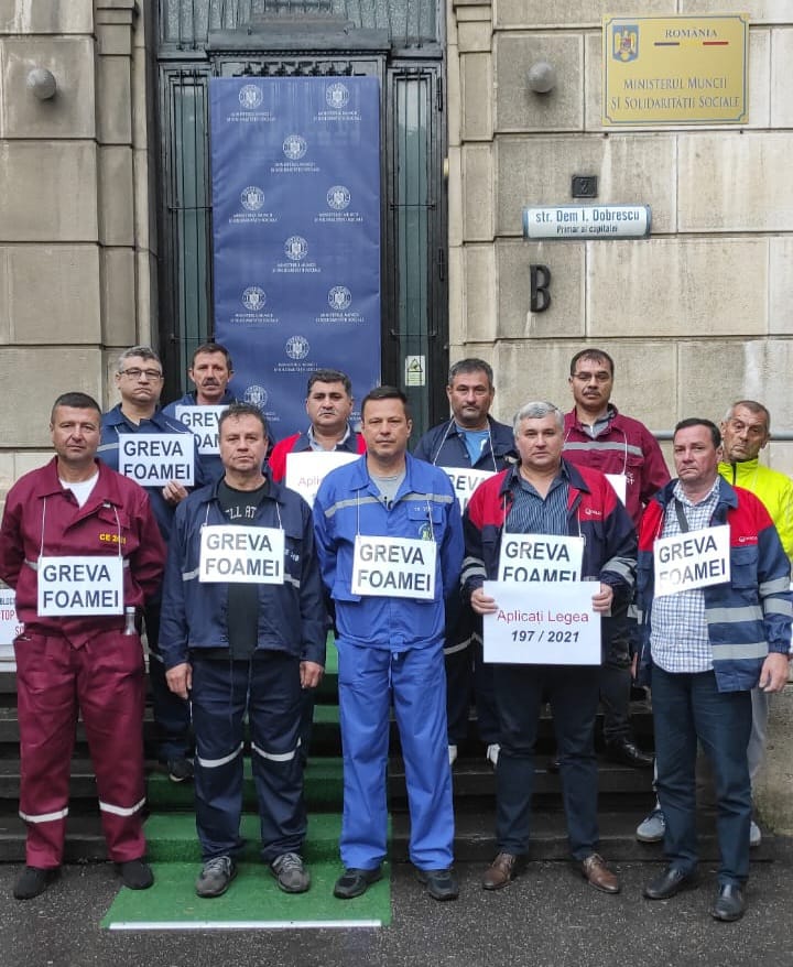 “În urma discuțiilor purtate pentru deblocarea și aplicarea în totalitate a prevederilor legii nr.197/2021, discuții avute cu Domnul Marius Budăi, Ministrul Muncii și Domnul Cristian Vasilcoiu, Ministru Secretar de Stat, am hotărât să intrăm în protest extrem (GREVA FOAMEI), în fața Ministerului Muncii!