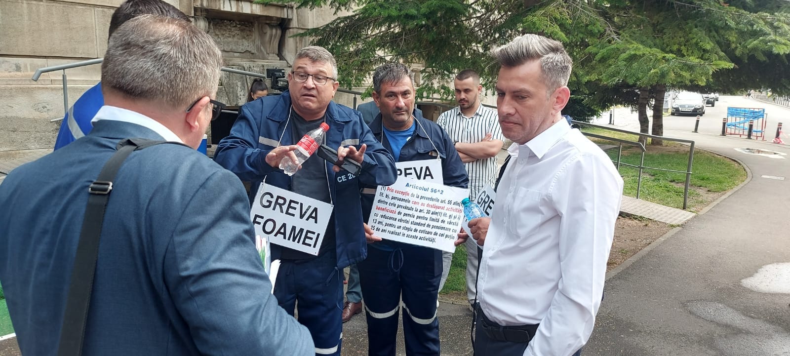 Minerii și energeticienii nu renunță la luptă. Salariații CEO au recurs la o măsură și mai extremă, aflându-se în cea de-a doua zi de greva foamei în fața Ministerului Muncii, pentru ca legea 197 să fie aplicată. Printre persoanele care protestează astăzi la București se numără și salariați ai Sindicatului Energia Rovinari, în frunte cu vicepreședintele sindicatului, Manu Tomescu. Acesta a discutat chiar și cu jandarmii care au încercat să stopeze demersul gorjenilor, însă Manu Tomescu i-a asigurat că nu vor tulbura liniștea publică, greva foamei fiind un protest individual.