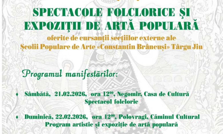„În cadrul acestei ediții, desfășurate în perioada 21-27 februarie 2026, patru localități gorjenești vor găzdui o serie de activităţi cultural-artistice menite să ne reamintească importanţa artelor şi a culturii pentru păstrarea identităţii naţionale.