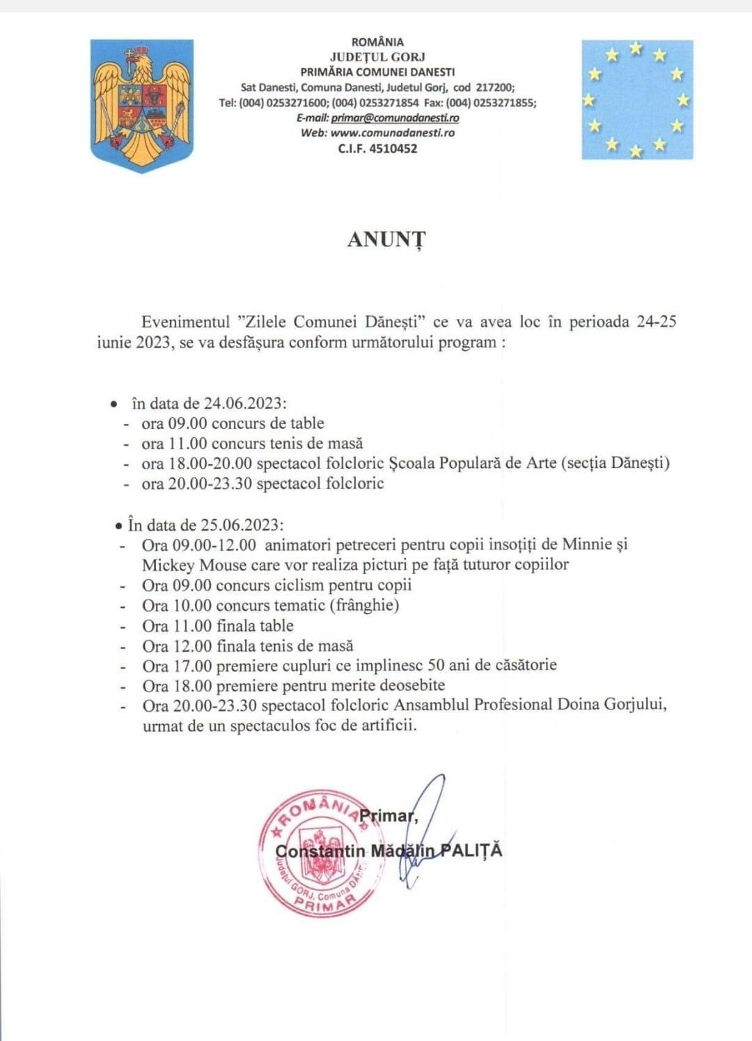 Programul “Zilele Comunei Dănești”