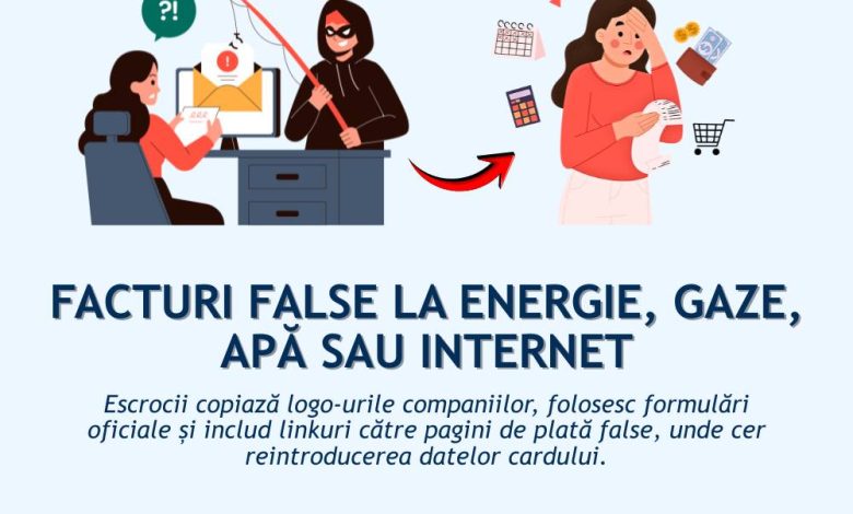 Atacatorii cibernetici pot trimite notificări privind „restanțe”, „regularizări urgente” sau „facturi neplătite”, în numele unor furnizori de energie, apă, gaze…