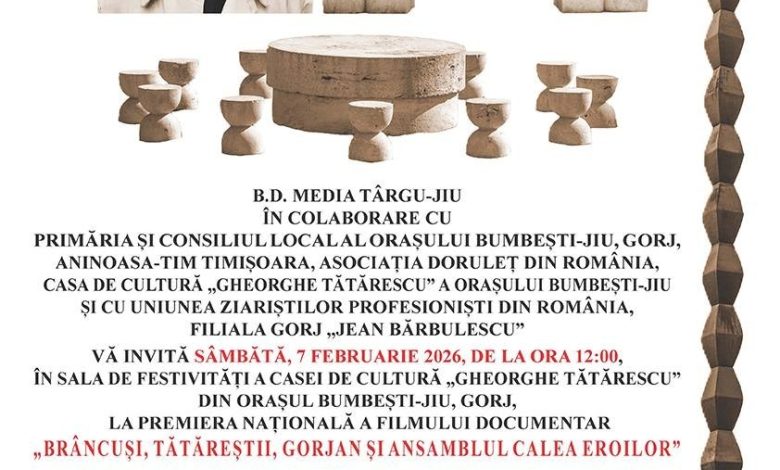 Mai multe...Anul 2026, declarat Anul Național „Constantin Brâncuși”, aduce la Bumbești-Jiu un eveniment cultural de amploare, dedicat marelui sculptor și moștenirii…