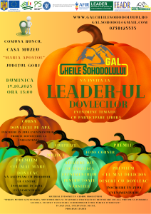 Mai multe...GAL Cheile Sohodolului organizează, în premieră, evenimentul LEADER-ul dovlecilor. Prima ediție a evenimentului va avea loc pe 19 octombrie, ora…