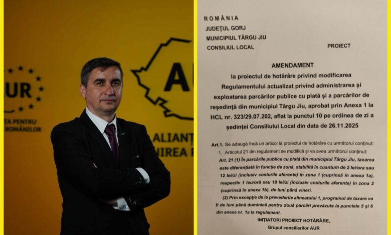 Mai multe...Consilierii locali AUR din Târgu Jiu anunță un set amplu de modificări privind taxele pentru parcările publice cu plată. Măsurile…