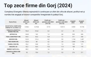 Economia județului Gorj este dominată în continuare de câteva companii mari, cu activitate puternică și mii de angajați. Datele financiare pentru anul 2024 arată însă schimbări importante față de anul precedent: scăderi semnificative de cifră de afaceri în unele cazuri, dar și creșteri spectaculoase pentru alte firme.
