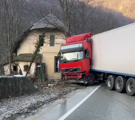 Traficul rutier este blocat pe Drumul Național 66, în zona Defileului Jiului, după ce șoferul unui autotren, înmatriculat în județul Alba, a pierdut controlul direcției și a intrat într-o casă aflată la marginea drumului. Potrivit primelor informații, accidentul s-a produs pe fondul carosabilului înghețat. Autotrenul a părăsit partea carosabilă și a lovit imobilul, provocând pagube materiale semnificative. Din fericire, nu au fost raportate victime.